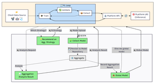 This provides a production-ready federated training core supporting synchronous/asynchronous rounds (e.g., FedAvg with pluggable reducers), straggler tolerance, partial participation, and secure client bootstrapping via Python/REST SDKs with checkpoint resume. Privacy and security are built in with transport encryption, optional secure aggregation, per-field masking, RBAC with token-based authentication, signed artifacts, and end-to-end audit trails for lineage and provenance. A full MLOps layer manages model versions and metadata with policy-based promotion/rollback and automated evaluation gates for metrics, bias, and drift before global release, while continuous training hooks enable scheduled federated rounds. Interoperability is ensured through stable REST/JSON APIs, reusable schemas for models/metrics/events, webhooks and message-bus adapters, plus import/export in common formats (e.g., ONNX, PyTorch). Explainability is first-class: pluggable XAI providers generate human-readable “why” payloads alongside recommendations. Operations are supported with real-time dashboards, structured logs, traces, alerts, multi-tenant isolation, and quota controls, and deployment is portable across cloud, on-prem, and edge with containerized services and horizontal scaling. The ECSTA simulation testbed adds synthetic data generators, scenario scripts, and fault injection (dropout, drift, poisoning) to A/B aggregation policies in batch or real time, benchmarking throughput, latency, and convergence. Finally, configurable data governance features cover retention, pseudonymization hooks, consent and processing records, and exportable audit packs for external assessments.